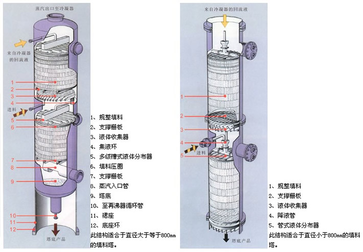 规整填料塔的分离性能取决于内件,即填料、分布器、收集器等。同时也取决于许多参数,如气体负荷、液体负荷、物料性质、操作压力、填料湿润性能和液体分布不均匀等等。至今不能由填料的几何形状来精确计算塔的分离性能,需要通过填料塔的理论和不同条件下通过试验塔来测定准确数据。用户可根据资料以一级近似程度确定塔的尺寸和需要的填料高度。如果需要经济、合理的结构形式,我厂愿与用户密切合作。